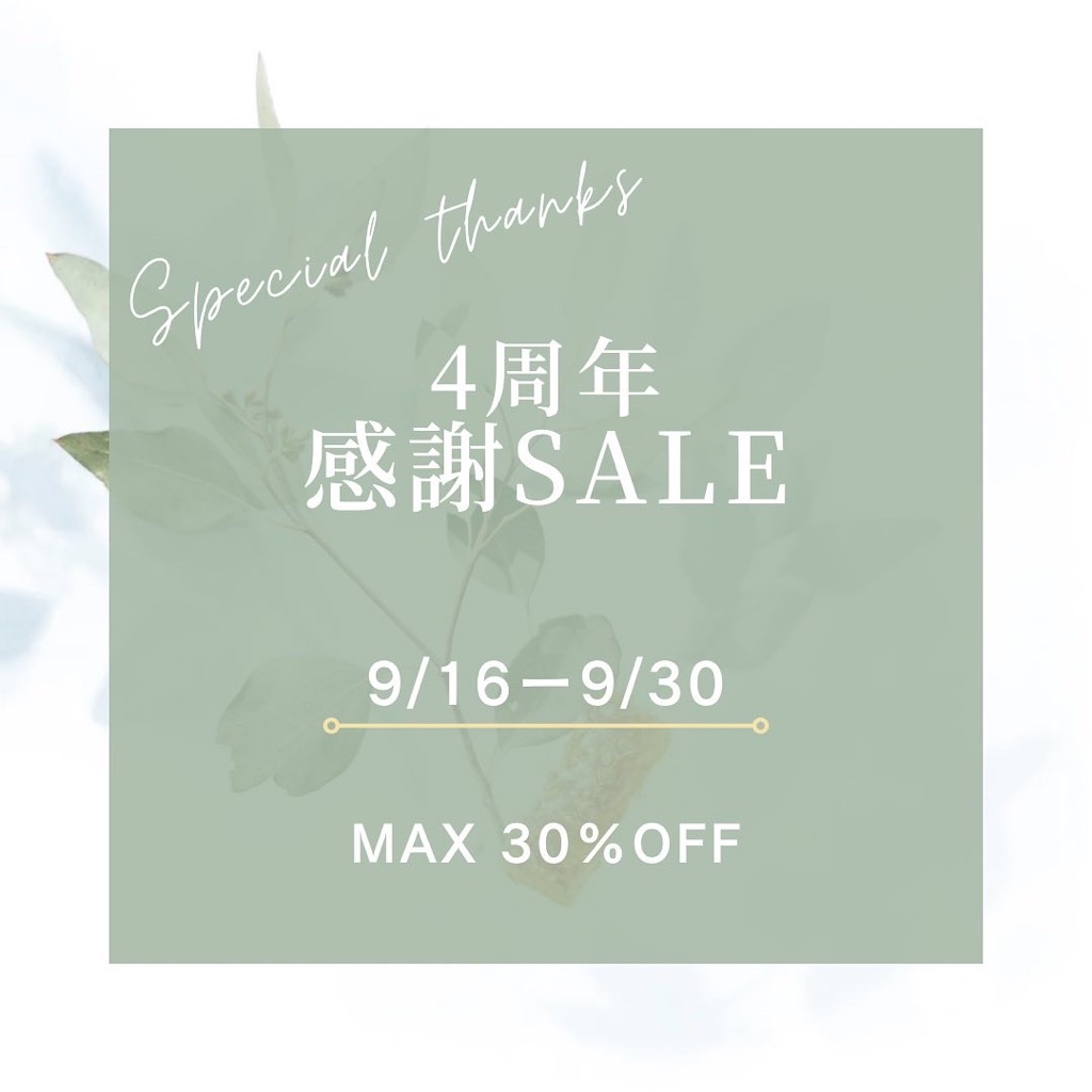 9/30まで日頃の感謝の気持ちを込めまして、4周年感謝SALEを開催中です。