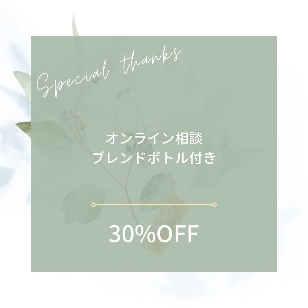 ブレンドボトル付きのオンラインカウンセリングも30%OFFとお得になっておりますので、よかったらお待ちしております。